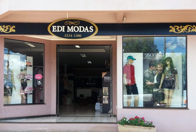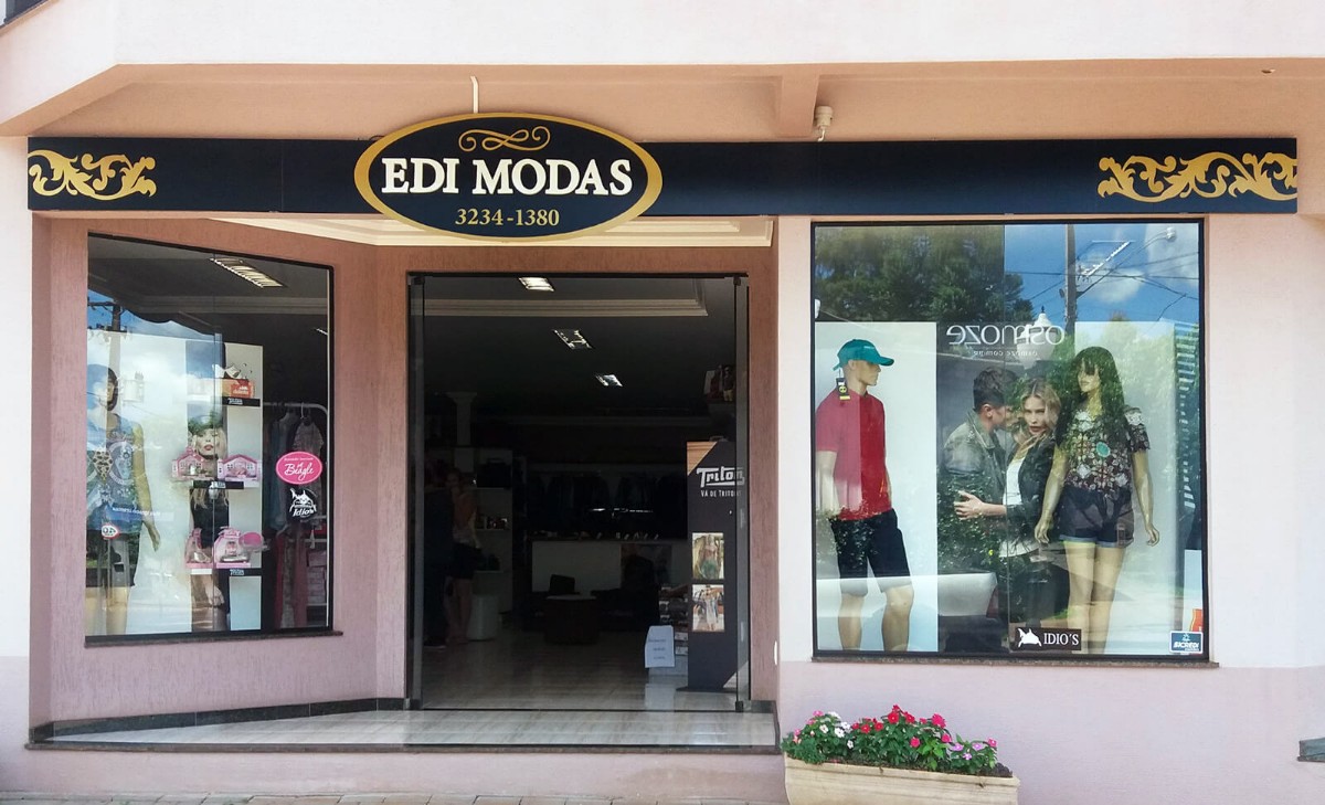 Cliente: Edi ModasCidade: Bom Sucesso do Sul/PRDetalhes: Fachada em ACM com letreiro em caixa alta de metal + recortes de ACM