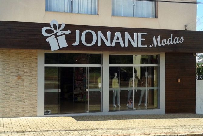 Cliente: Jonane ModasCidade: Galvão/SCDetalhes: Fachada em Madeira com letreiro em caixa alta de metal