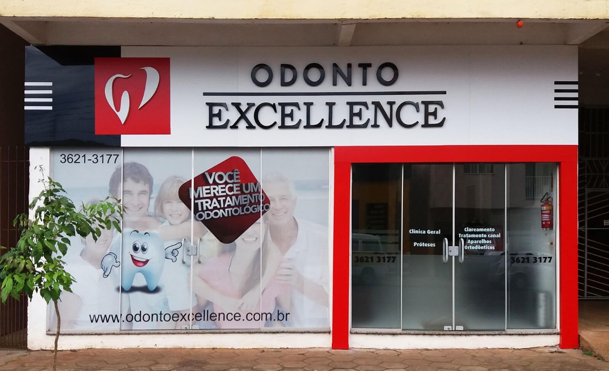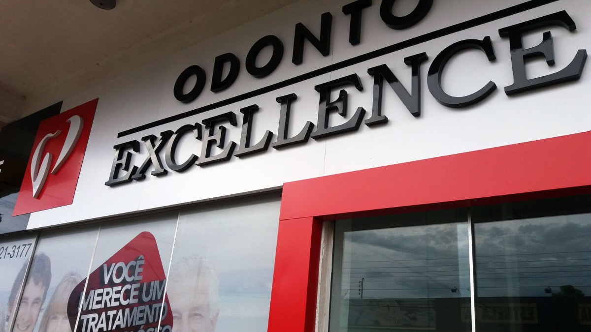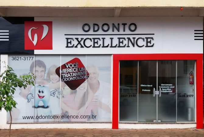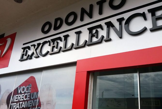 Cliente: Odonto ExcelenceCidade: São Miguel do Oeste/SCDetalhes: Fachada em ACM com letreiro em caixa alta de metal + Recortes em ACM e plotagem da vidraça