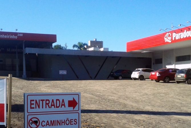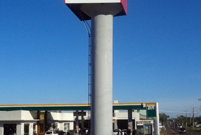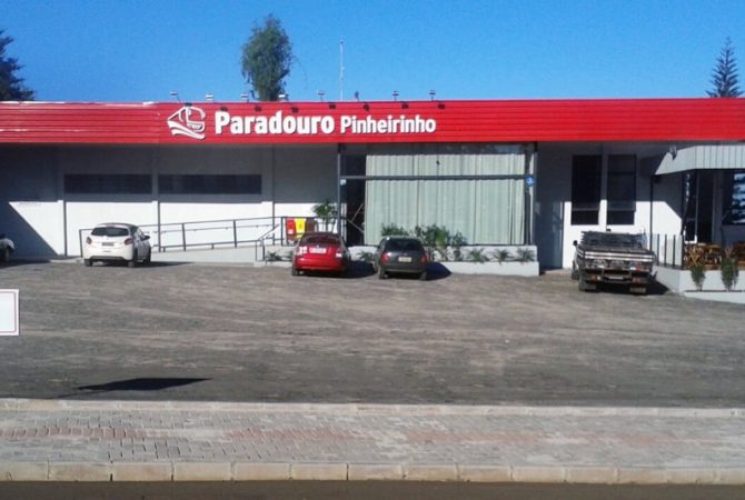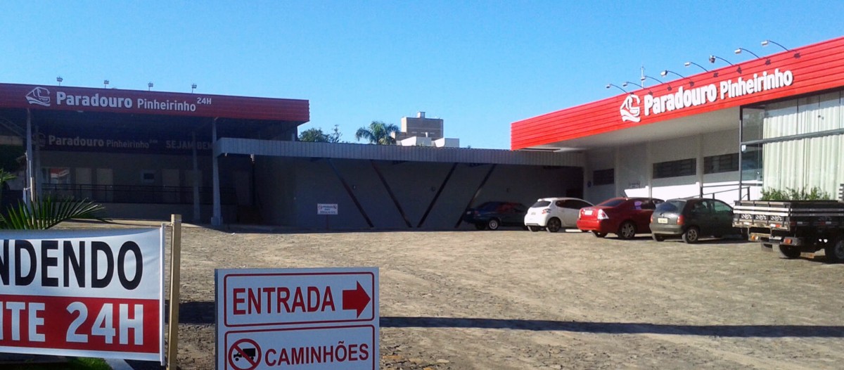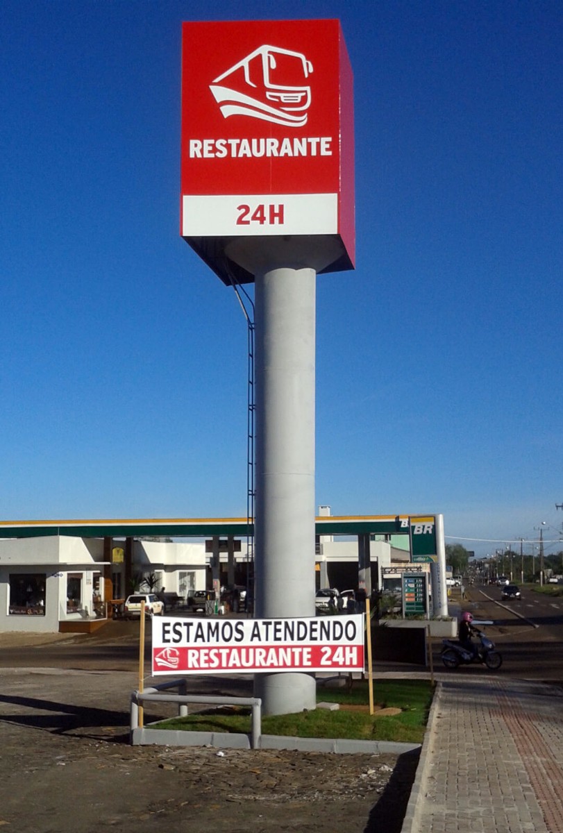 Cliente: Paradouro PinheirinhoCidade: São Miguel do Oeste/SCDetalhes: Fachada e coberturas com revestimento em Aluzinco + Letreiro em caixa alta de metal e recortes de ACM + Totem em ACM