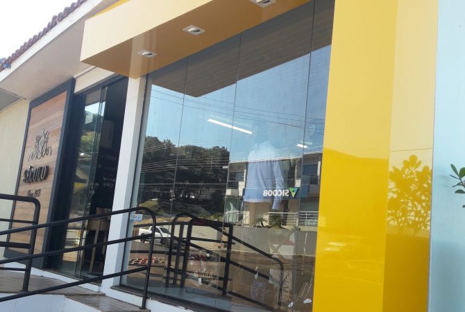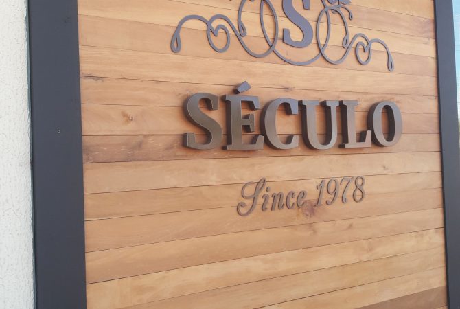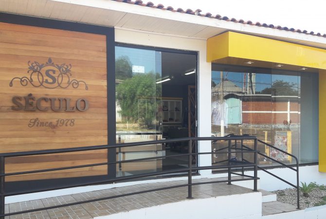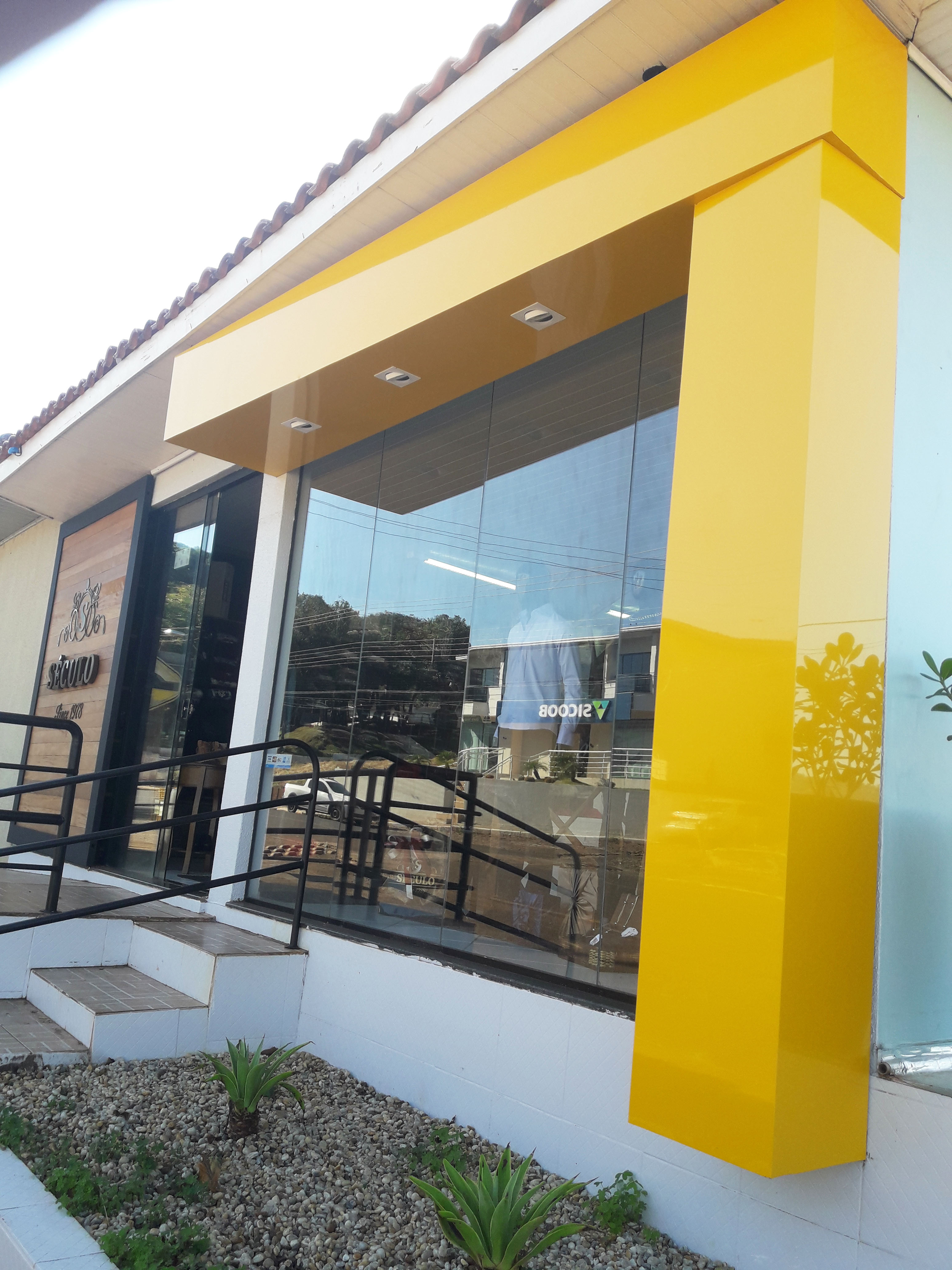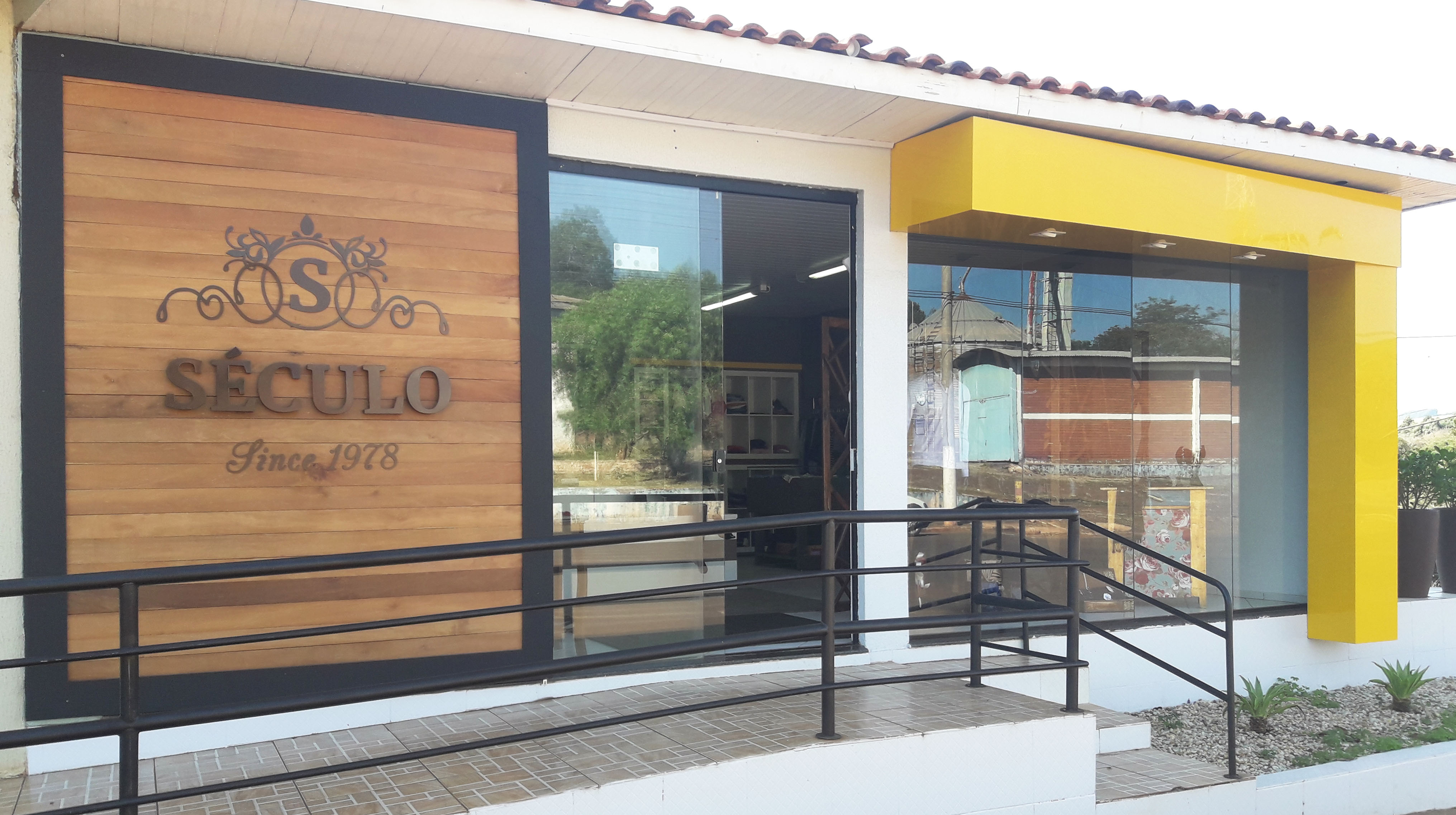 30Cliente: SéculoCidade: Ouro Verde/SCDetalhes: Fachada em madeira com caixa alta e modulos de led e portal em ACM
