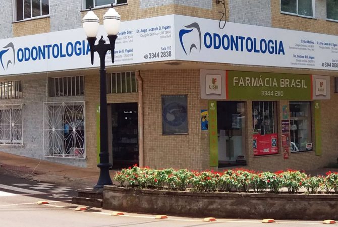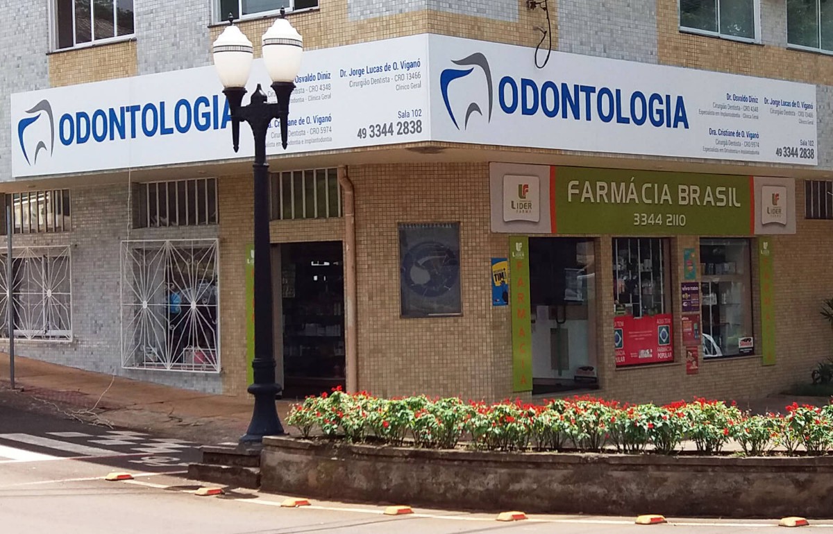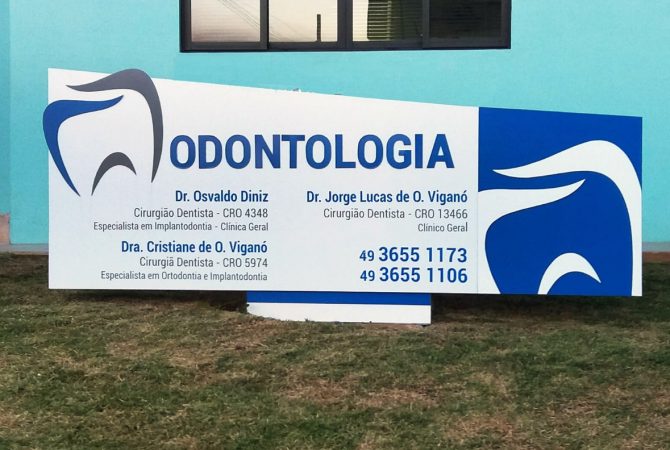 • Detalhes: Fachada em ACM, com recortes e adesivos + Totem em ACM